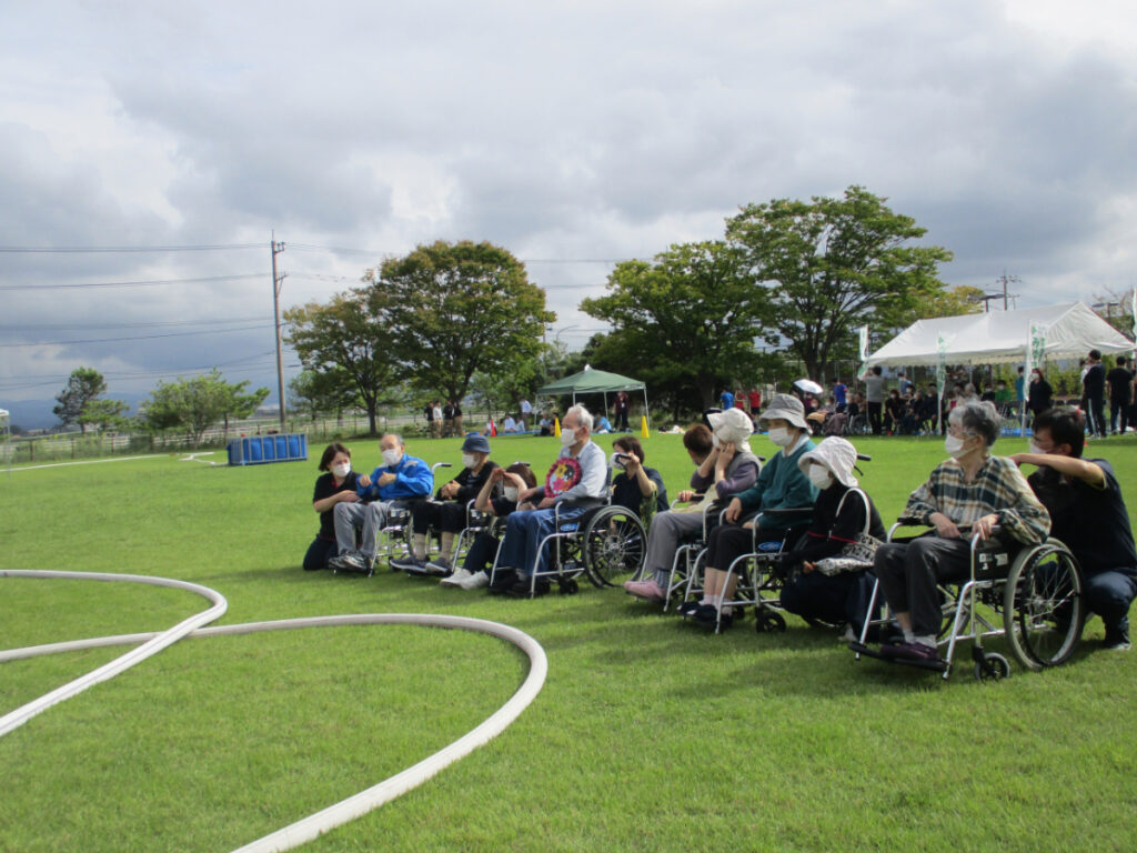 当日は秋晴れの爽やかな天気に恵まれ、施設の入居者様も応援に駆けつけてくださり、まるで孫の運動会を応援しているかのような力の入りようで、選手に力を与えてくださいました。