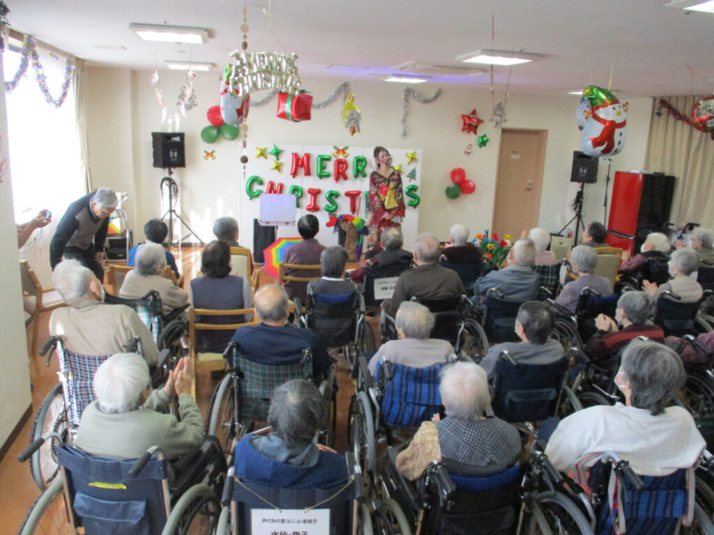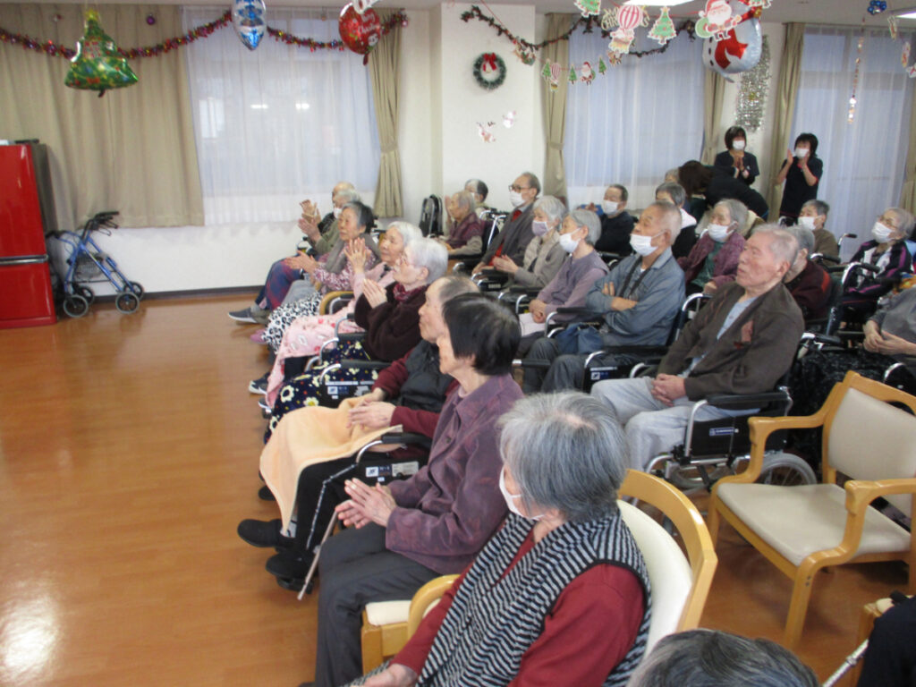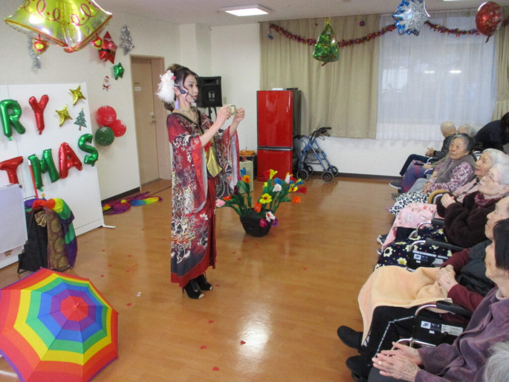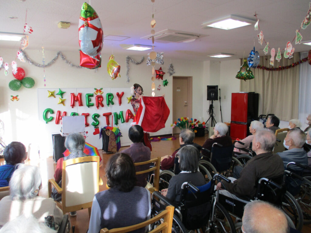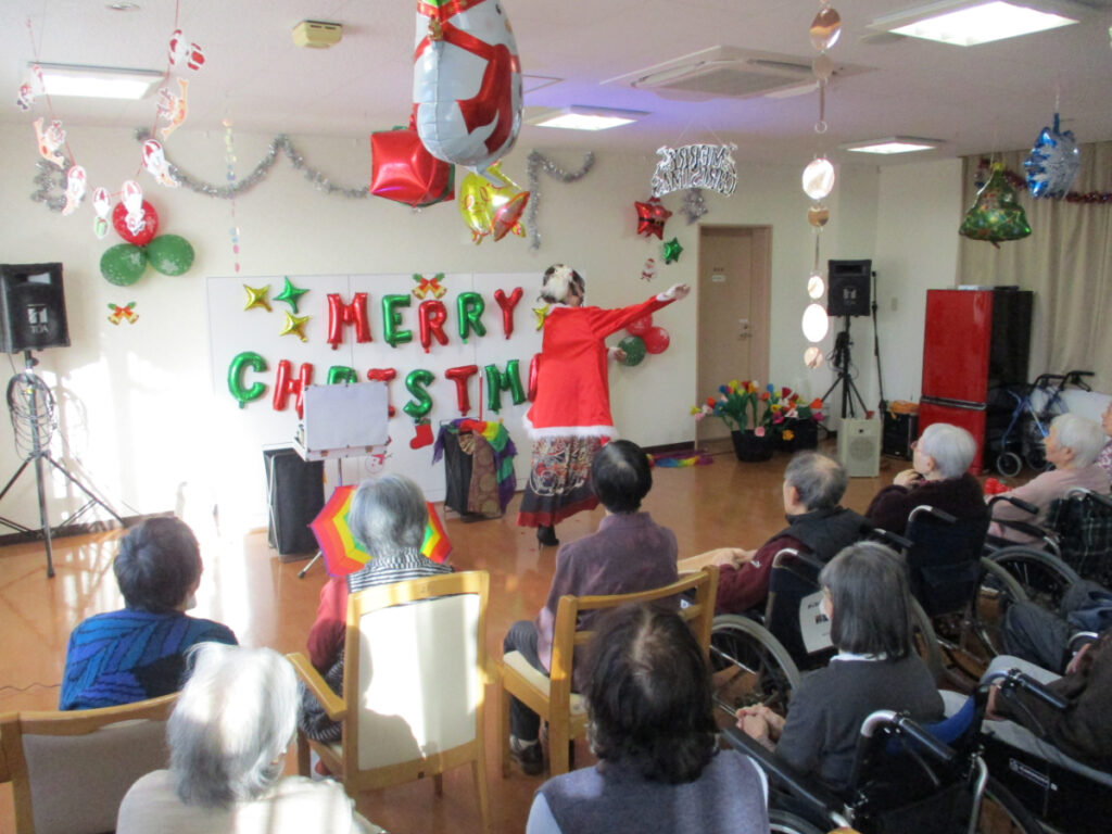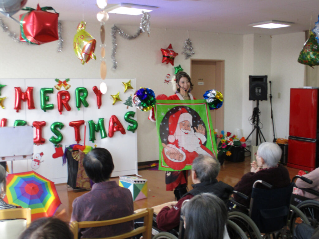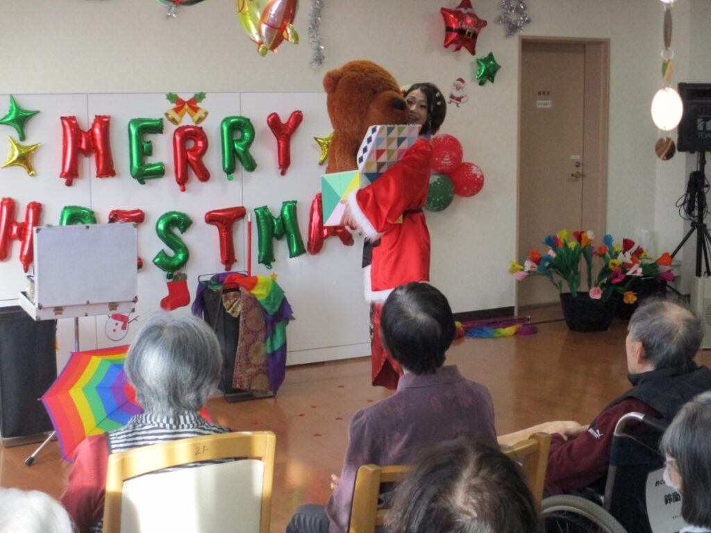 マジックショー終了後には、ご希望された方とお一人ずつ記念撮影を行う時間も設けることができました。 入居者の皆さんに笑顔と驚きを届けることができ、2025年の年末にふさわしい、心に残るイベントとなりました。