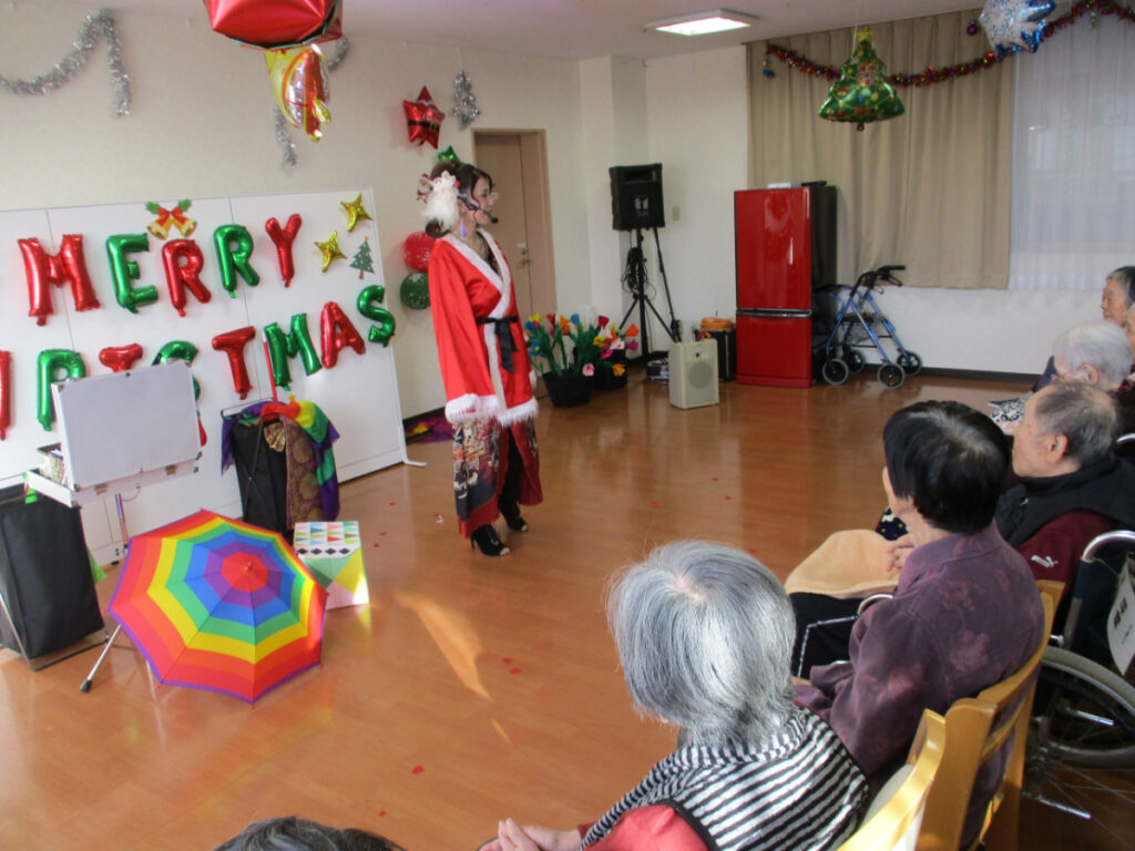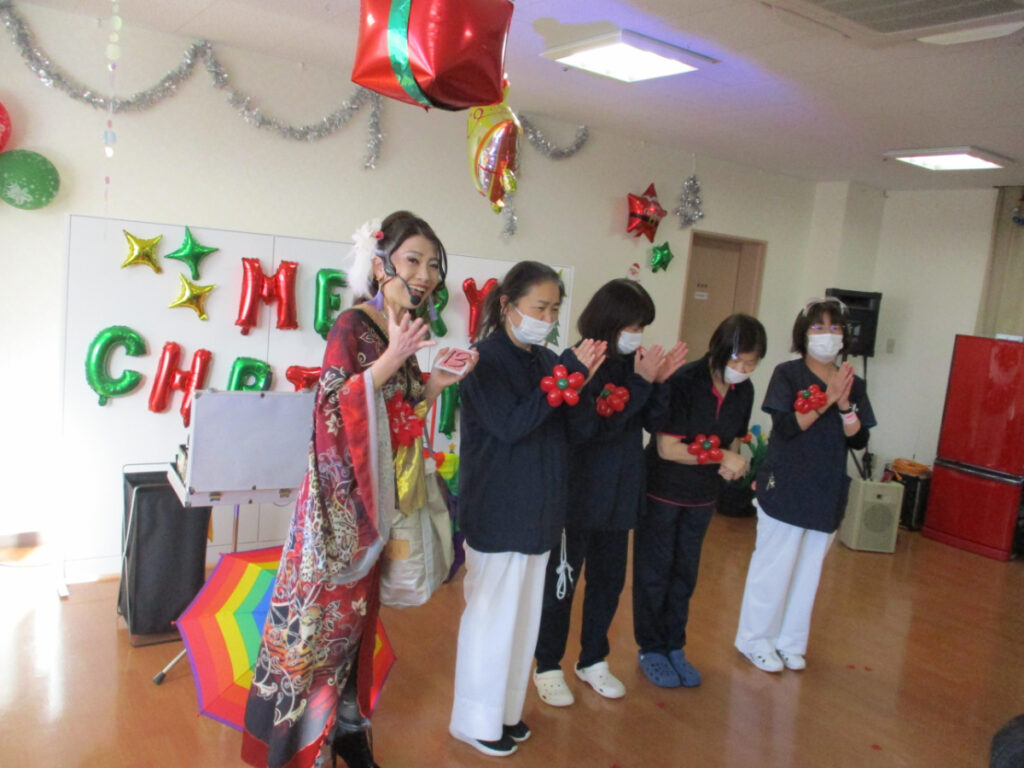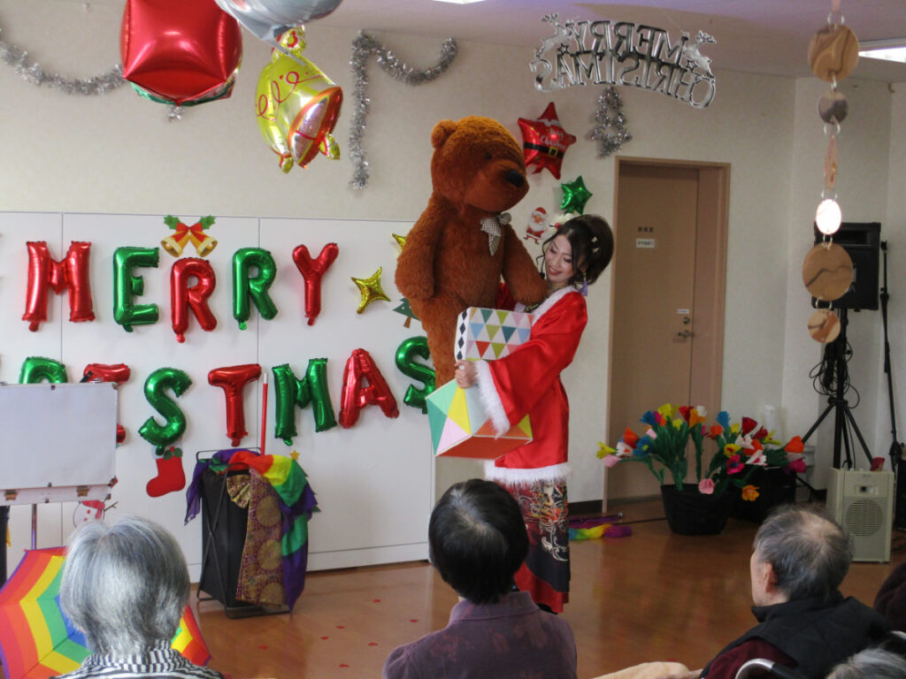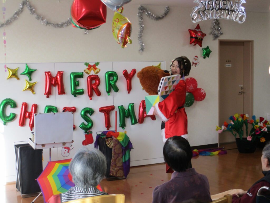 12月のお楽しみイベントとしてマジックショーを開催しました。 『繊細なクロースアップマジックから、妖艶で豪華なイリュージョンマジック、子どもに大人気のバルーンショーまで、多彩なパフォーマンスで日本各地で活躍中』のマジシャン RENA さんをお招きしました。